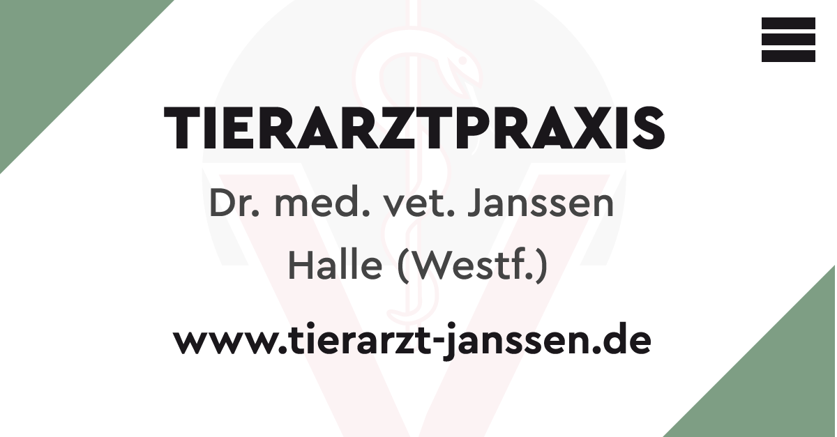 Die Übernahme und Nutzung der Daten zu anderen Zwecken bedarf der schriftlichen Zustimmung der Tierarztpraxis Dr. Volker Janssen.